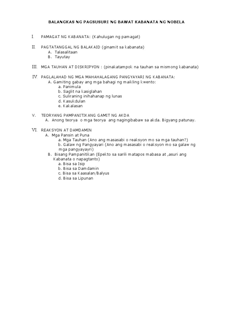 Balangkas Ng Pagsusuri Ng Nobela Pdf